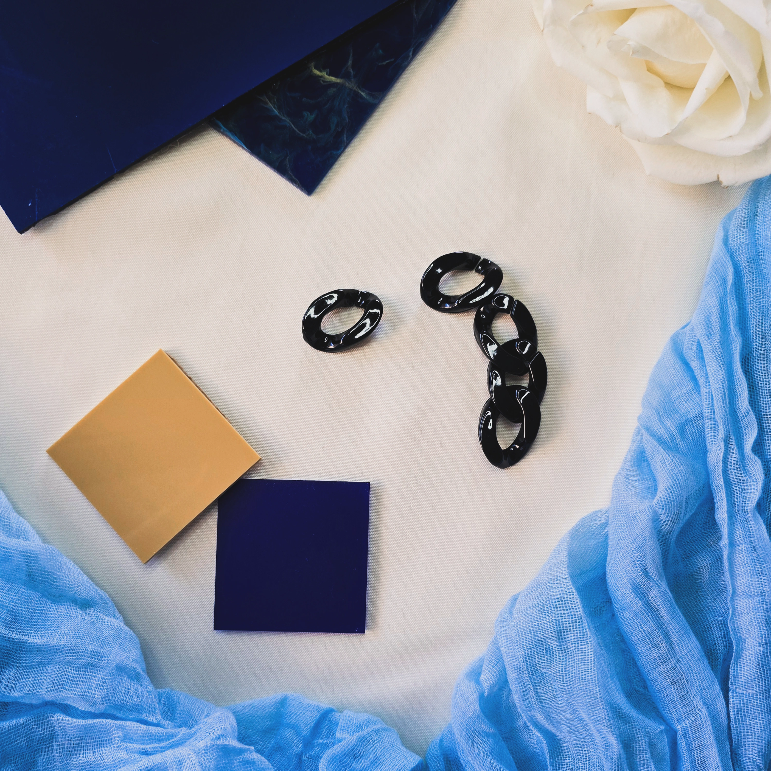 This handbag takes laser-cut acrylic to the next level. Inspired by the historical Ishtar Gate found in Babylon, it features layered shades of blue to echo the hand-painted lapis-colored bricks of old. The precision detail on its handle is a nod to the artisans of the past, while the chamomile flower symbolizes the goddess’s blessings