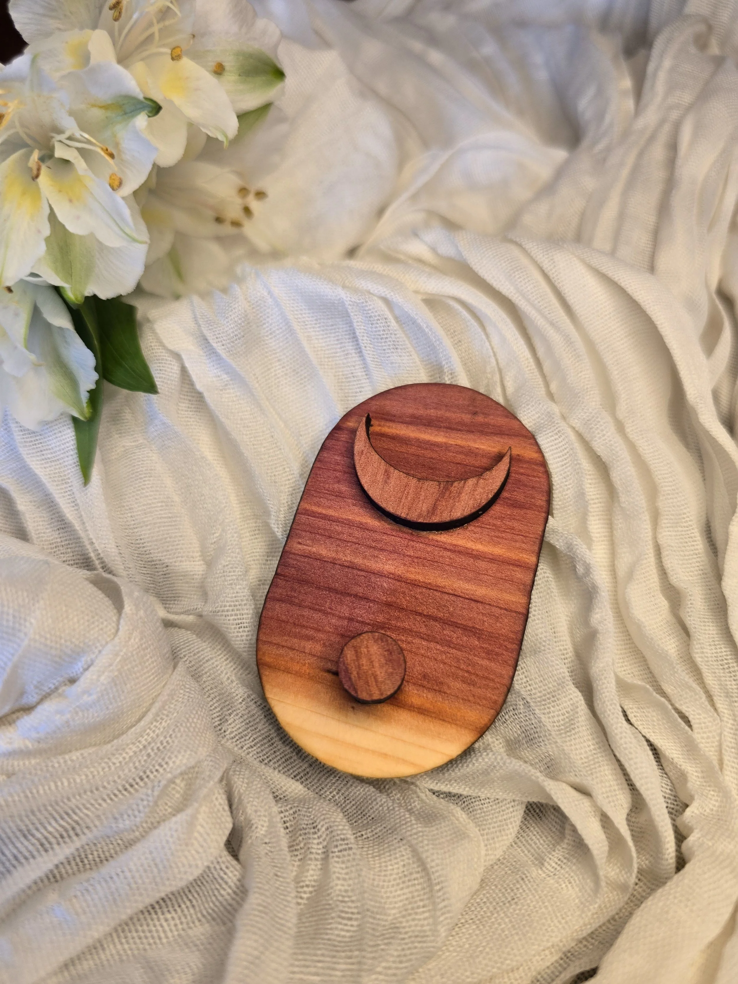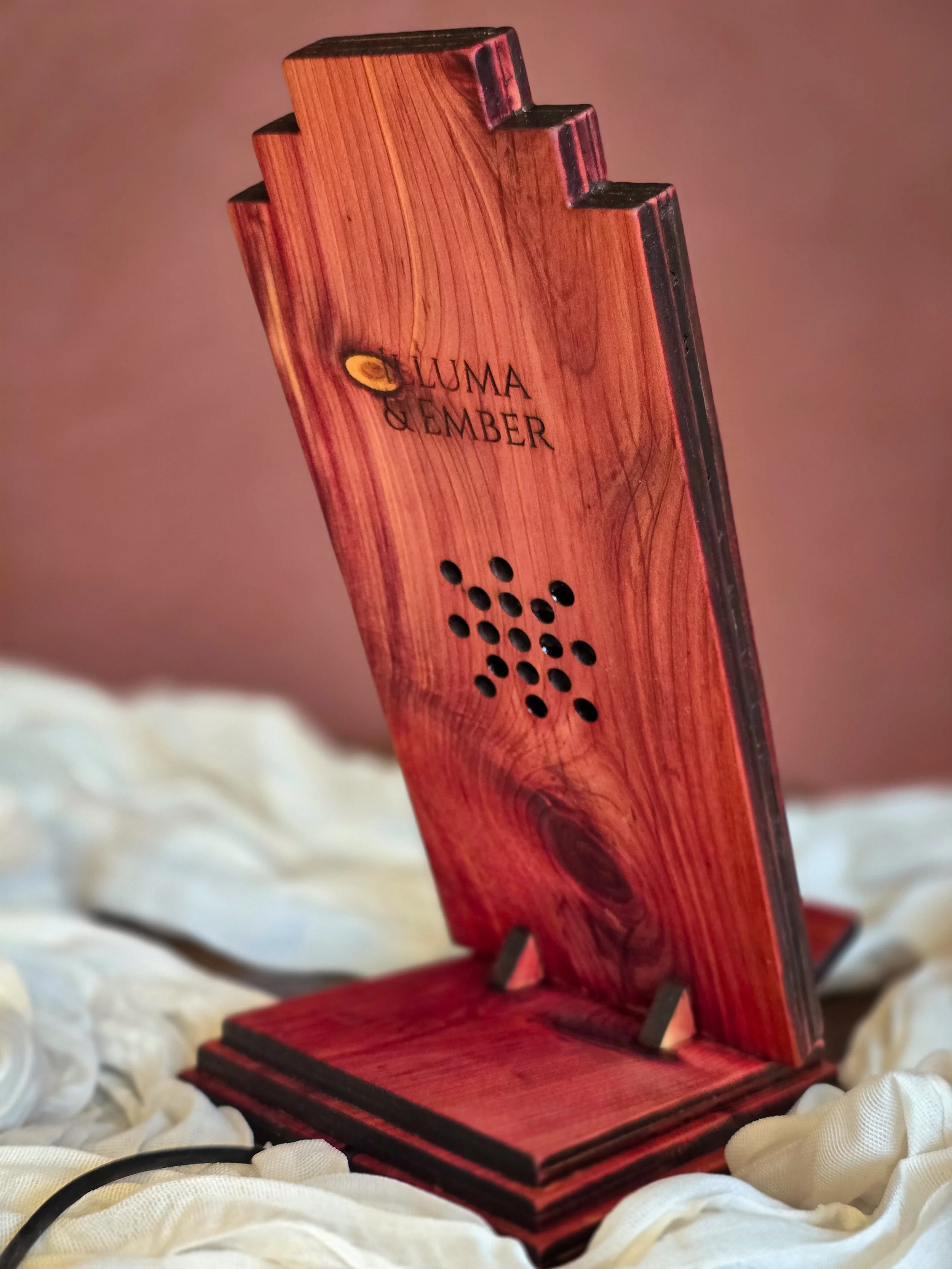 Designed to hold your device as it charges, it creates a place of pause within constant connection - where your phone rests, and you step away. Carved from 100% Eastern Red Cedar, each piece features unique grain and natural tonal variation, including subtle pale streaks.